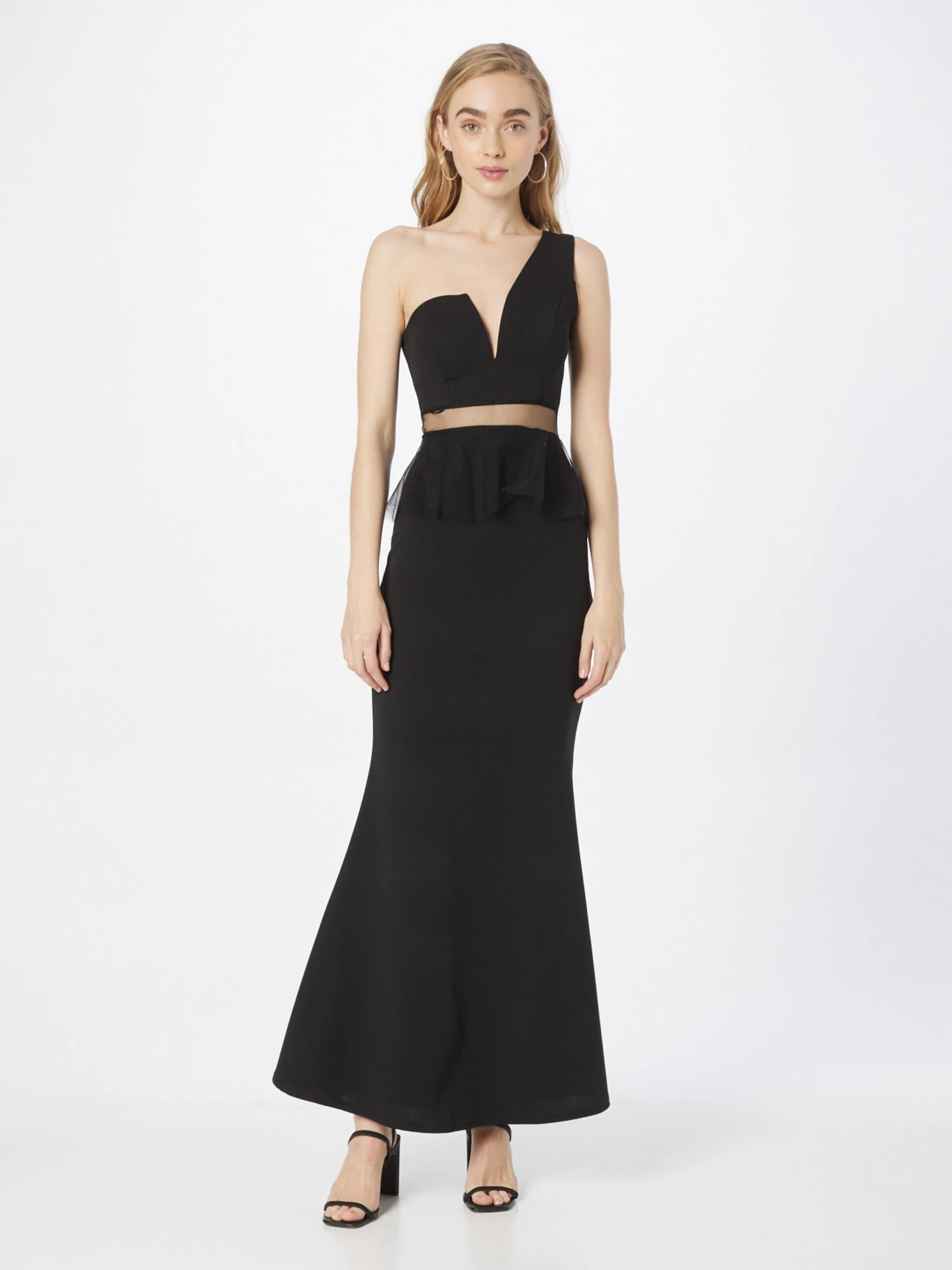 EffenOne-shoulderPeplumPlooienGevoerde zoom/randRug ritsGetailleerd modelDiepe snit/decolletéMeshLicht transparantOp staal nadenLichte stofRitssluiting