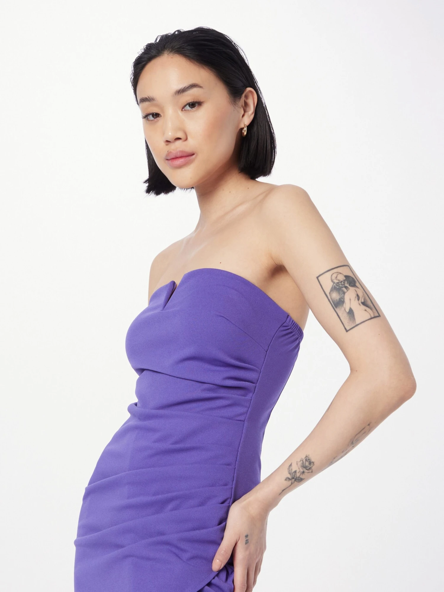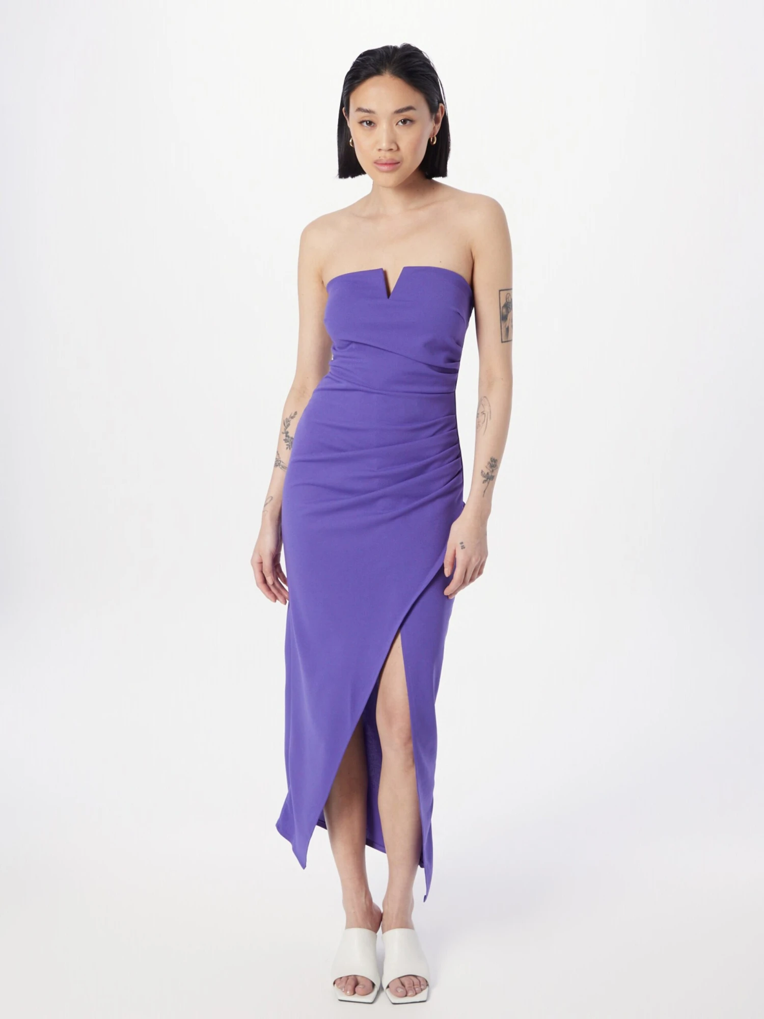 EffenBandeauGedrapeerdGevoerde zoom/randBeenopeningRug ritsGetailleerd modelWikkel-lookOp staal nadenGladde stofRitssluiting