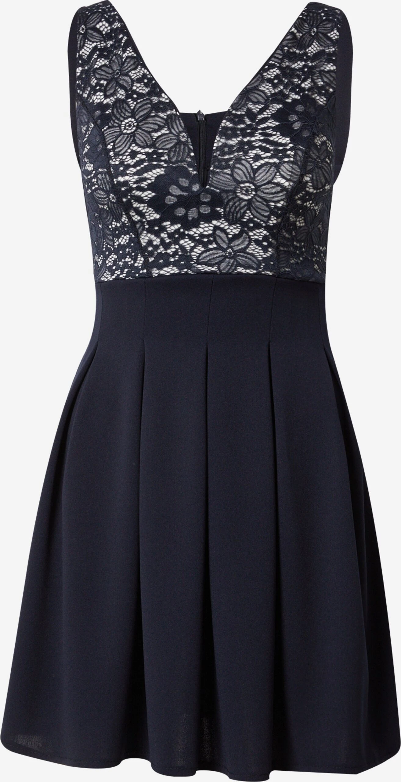 BloemenprintBrede bandjesV-halsKantPlooienRug ritsDeelnadenVerborgen ritsOp staal nadenLichte stofRitssluiting