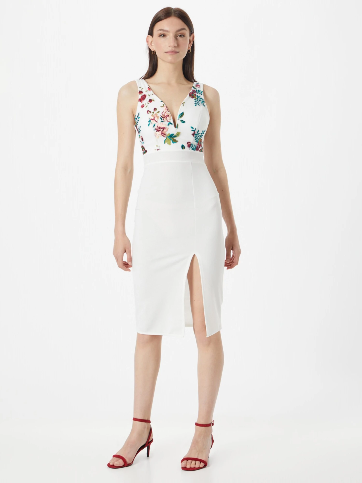 BloemenprintNormale bandjesV-halsBorduurselsGevoerde zoom/randBeenopeningRechte zoomRug ritsOp staal nadenVoelt zacht aanRitssluiting